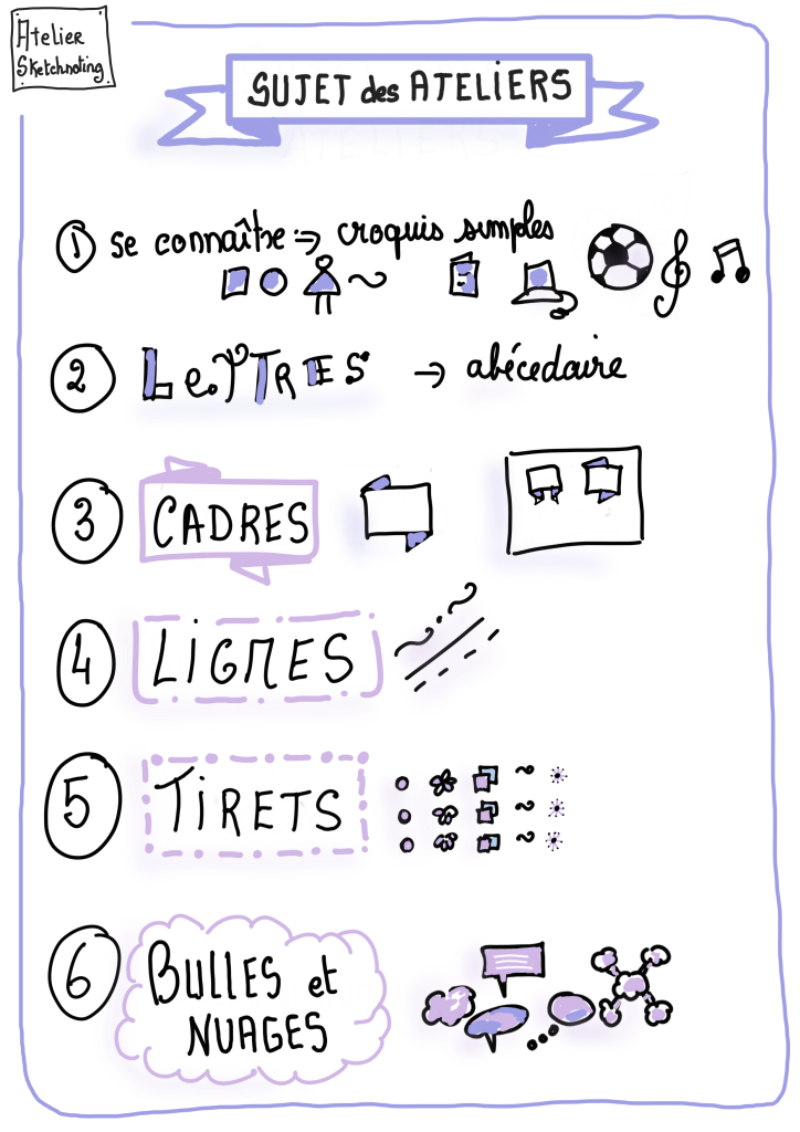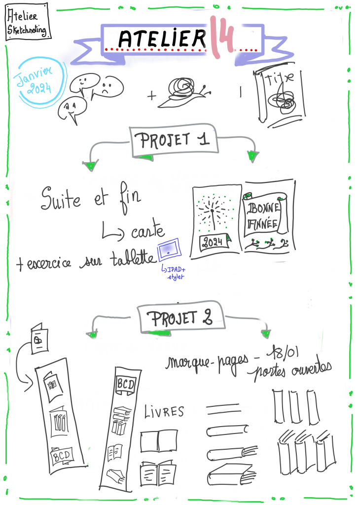 Les ateliers de sketchnoting ont repris en septembre 2022. Voici les fiches des ateliers et quelques réalisations des élèves.